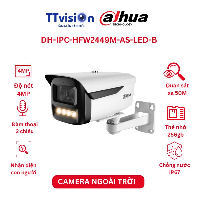 Thông số kỹ thuật camera IP thân lớn Full Color 4.0 MP DAHUA DH-IPC-HFW2449M-AS-LED-B